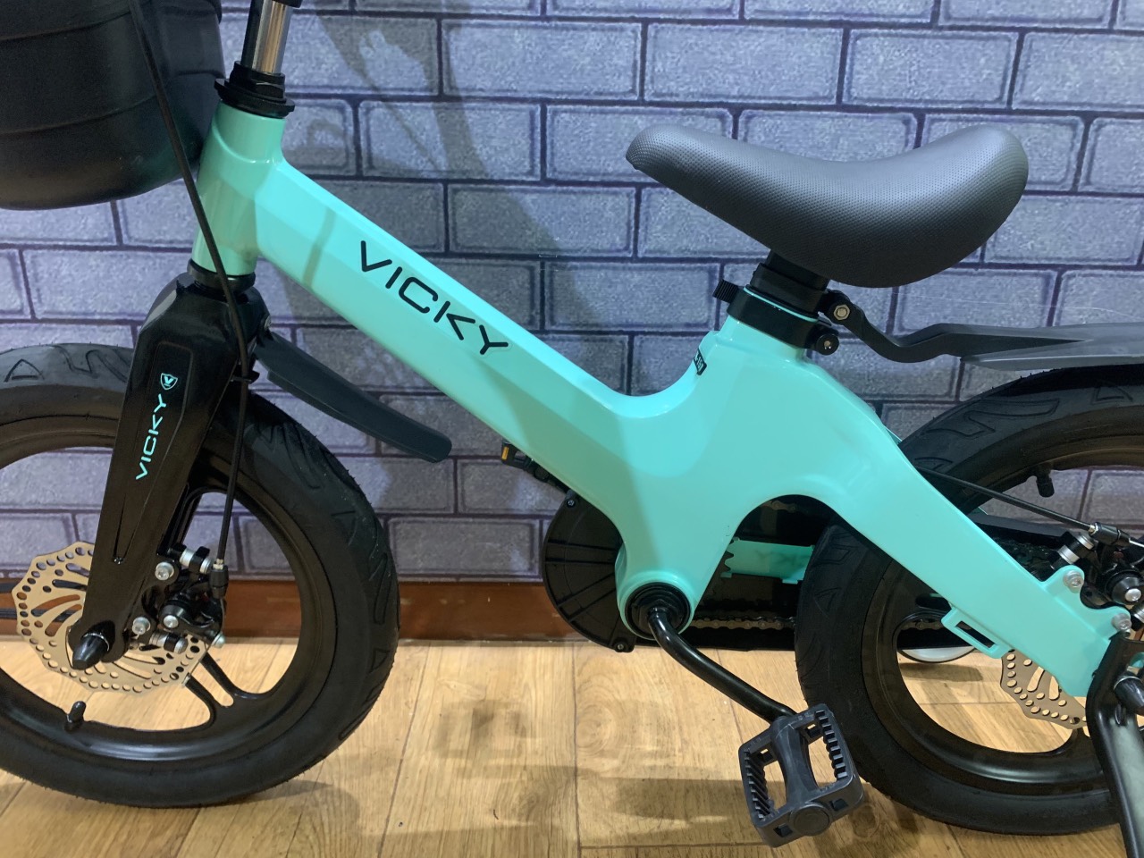 VICKY VK18D xe bánh đúc mới nhất với thiết kế khung được làm từ hợp kim nhôm, sơn tĩnh điện cao cấp cùng với đó là cặp bánh đúc nhôm nguyên khối giúp xe nhìn rất thể thao và cứng cáp, xe được làm hoàn toàn hầu như bằng nhôm nên trọng lượng xe rất nhẹ các bé có thể tự mang xe vào nhà cũng như bố mẹ có thể cho lên chung cư tiện lợi. Sử dụng bộ phanh đĩa rất an toàn cho bé