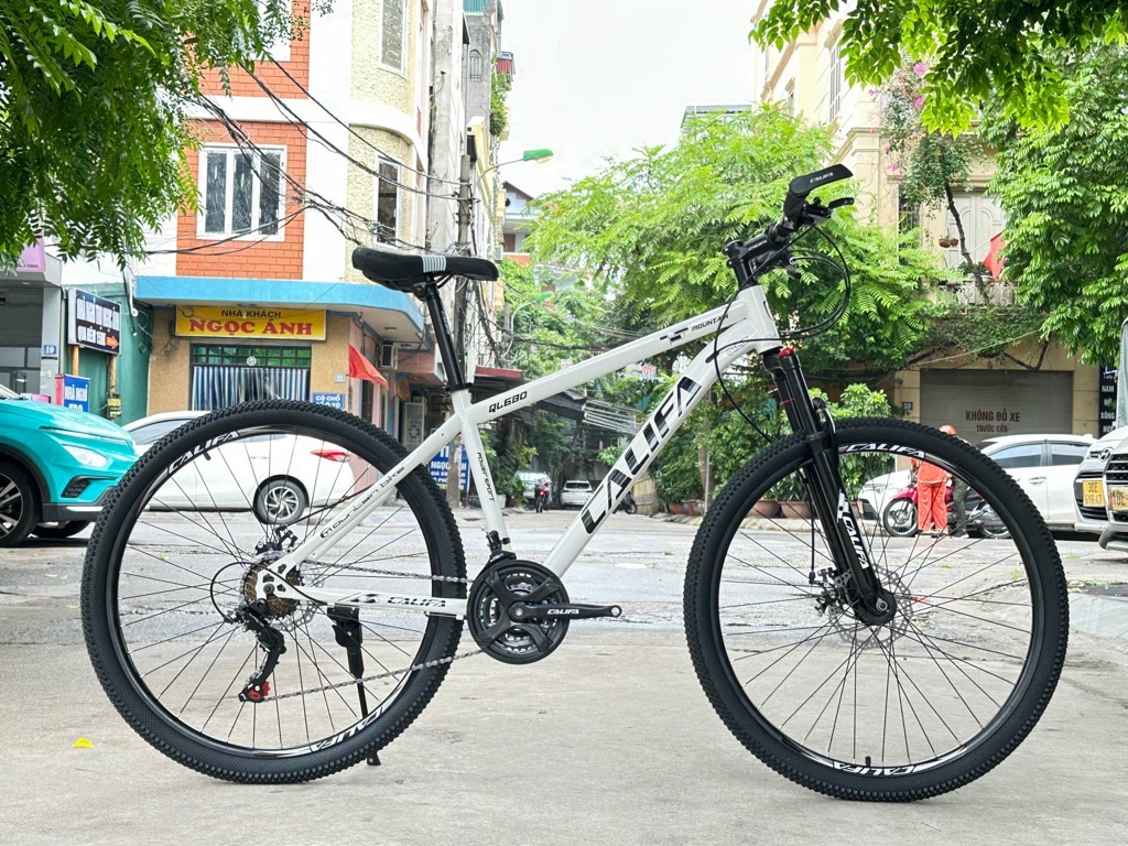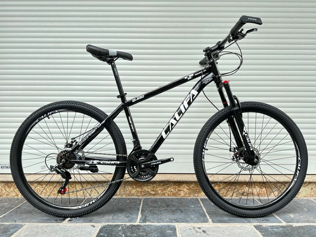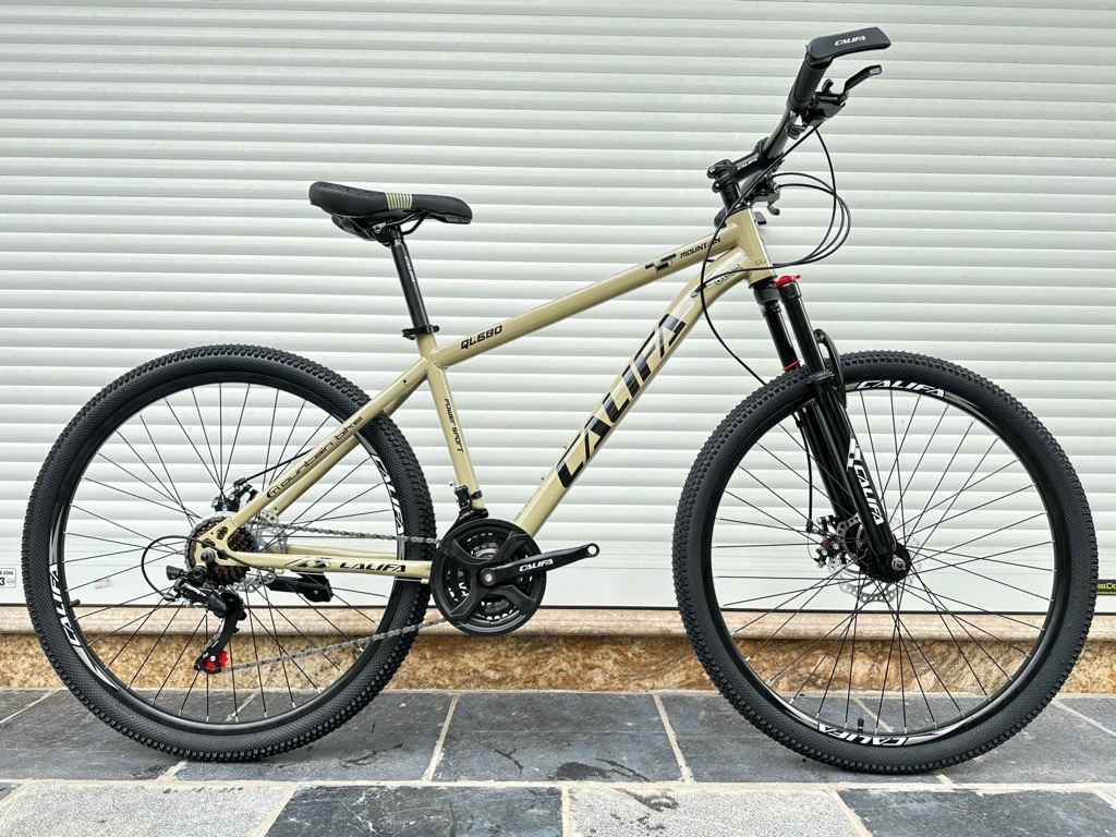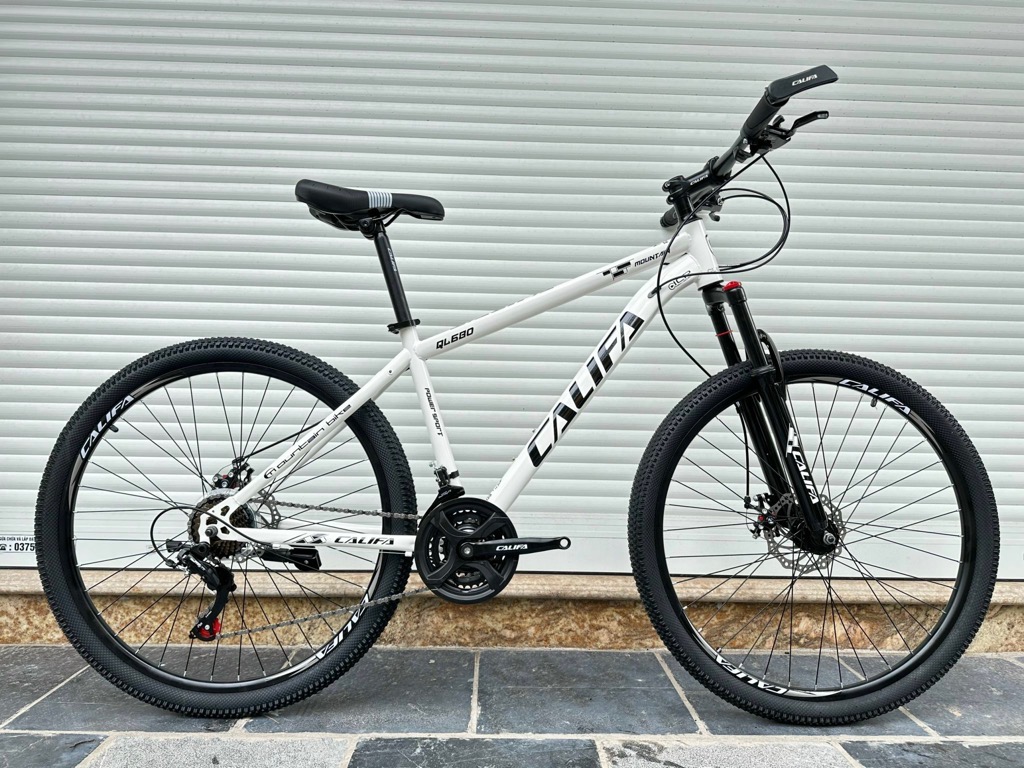 Xe địa hình bánh 27,5 CALIFA QL680 - Khung hợp kim thép cường lực. Sơn tĩnh điện cao cấp - Phuộc giảm sóc lò xo có khoá phuộc - Tay đề Shimano 3x7 tốc độ - Đùi đĩa 3 tầng thép bọc nhựa - Líp vặn 7 tầng - Gạt líp Shimano Tourney 7s - Gạt đĩa Shimano Tourney 3s - Phanh đĩa cơ - May ơ thép - Vành nhôm - Lốp 27,5x2.35