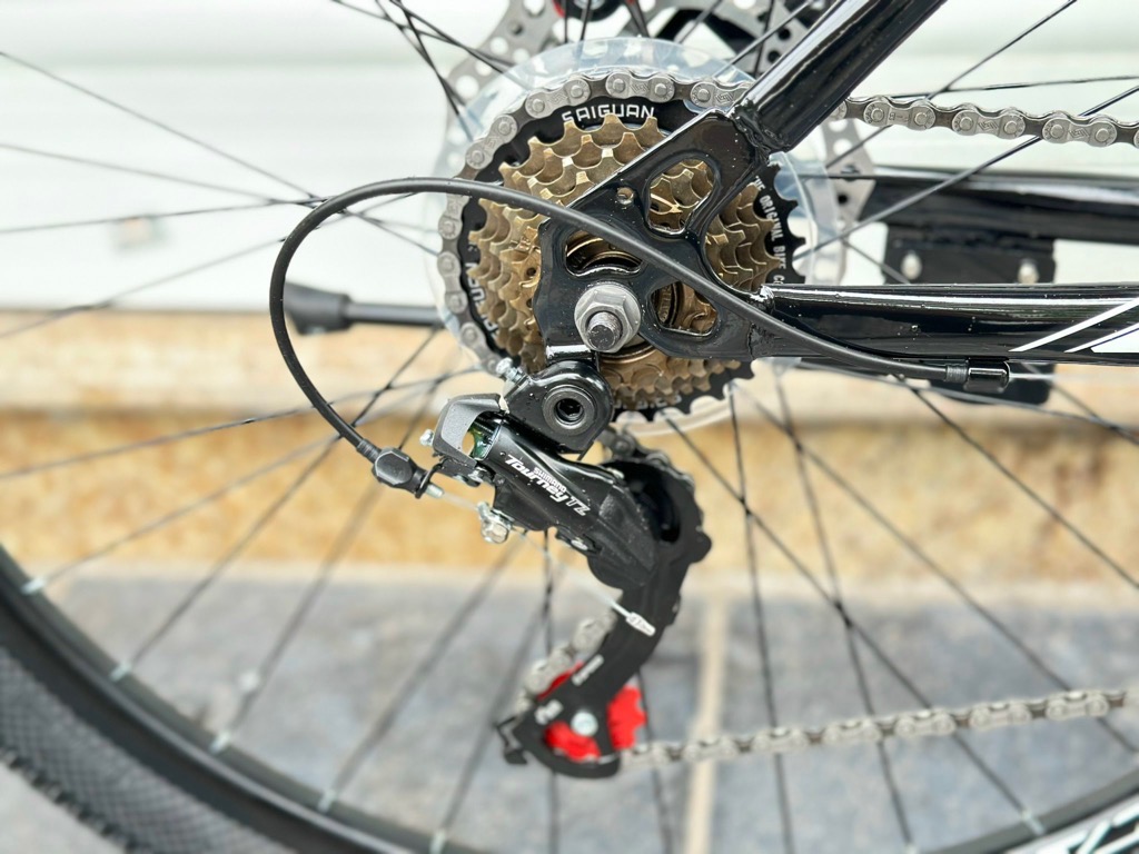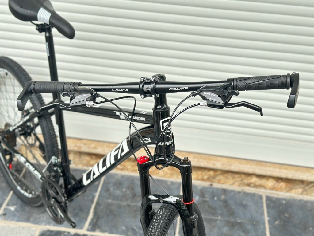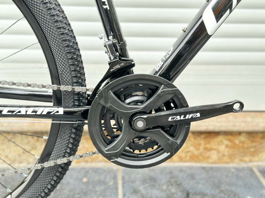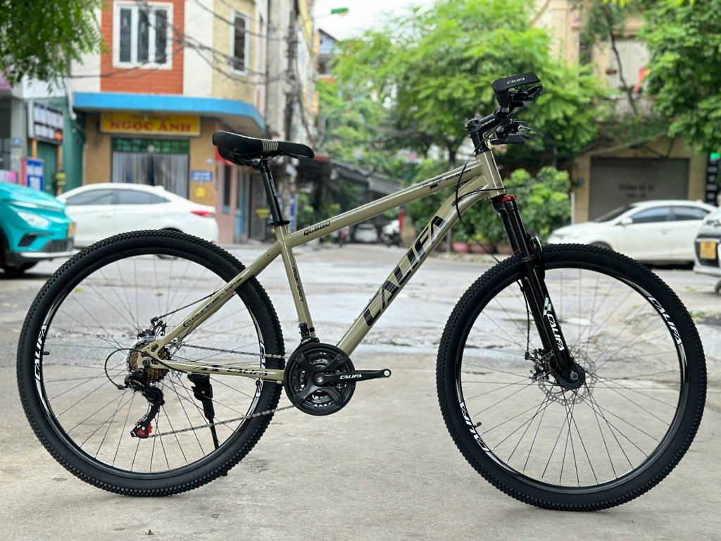 Xe địa hình bánh 27,5 CALIFA QL680 - Khung hợp kim thép cường lực. Sơn tĩnh điện cao cấp - Phuộc giảm sóc lò xo có khoá phuộc - Tay đề Shimano 3x7 tốc độ - Đùi đĩa 3 tầng thép bọc nhựa - Líp vặn 7 tầng - Gạt líp Shimano Tourney 7s - Gạt đĩa Shimano Tourney 3s - Phanh đĩa cơ - May ơ thép - Vành nhôm - Lốp 27,5x2.35